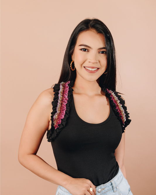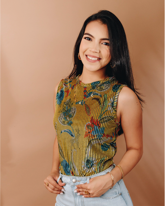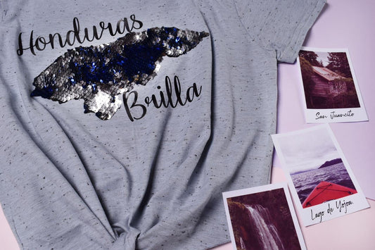 Honduras Brilla Knot Crop Top Mapa lentejuelas