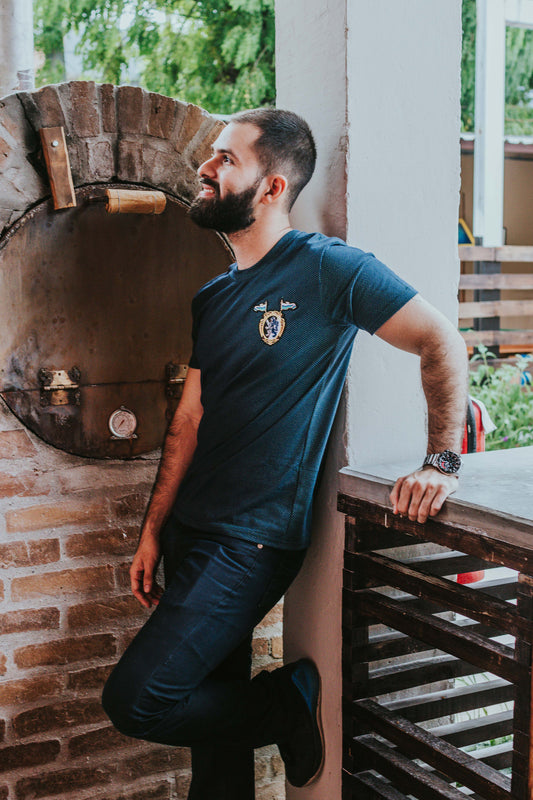 Cadenas Plateadas Cruz Piedras T-shirt Slim Fit